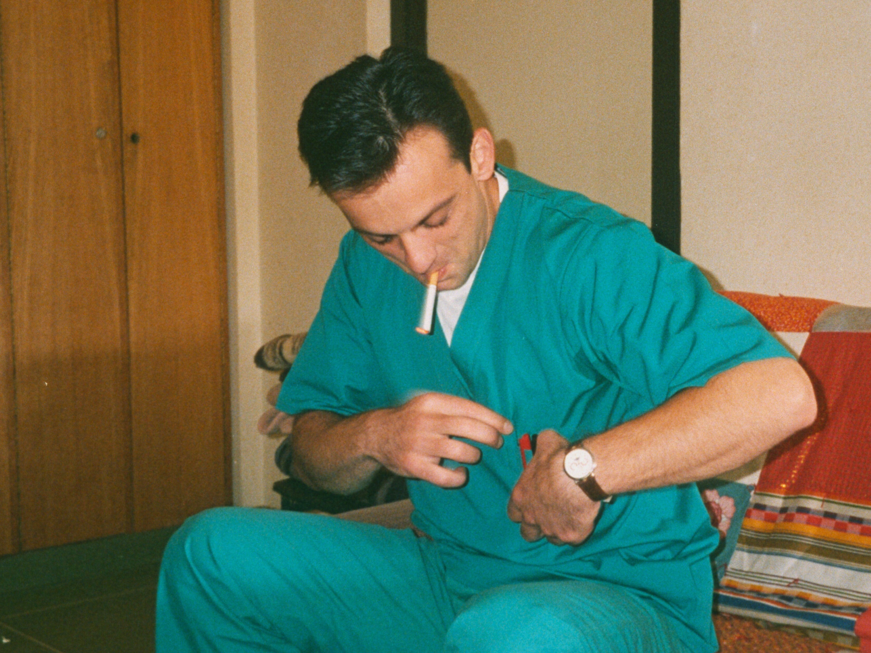 Dr. Leandrit Having a Smoke, Kosovo 1999