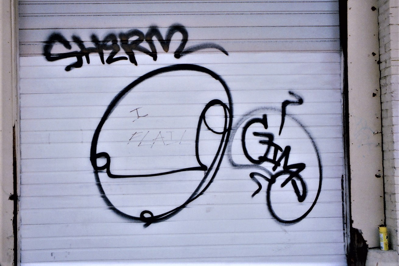 This is the artist that fueled my initial interest in street art & graffiti. There was an image by him/her on a wall next to parking lot that I frequented. I admired it dozens of times, whenever I parked. And then one day it was gone...painted over...graffiti abatement. It was then I decided to start documenting.