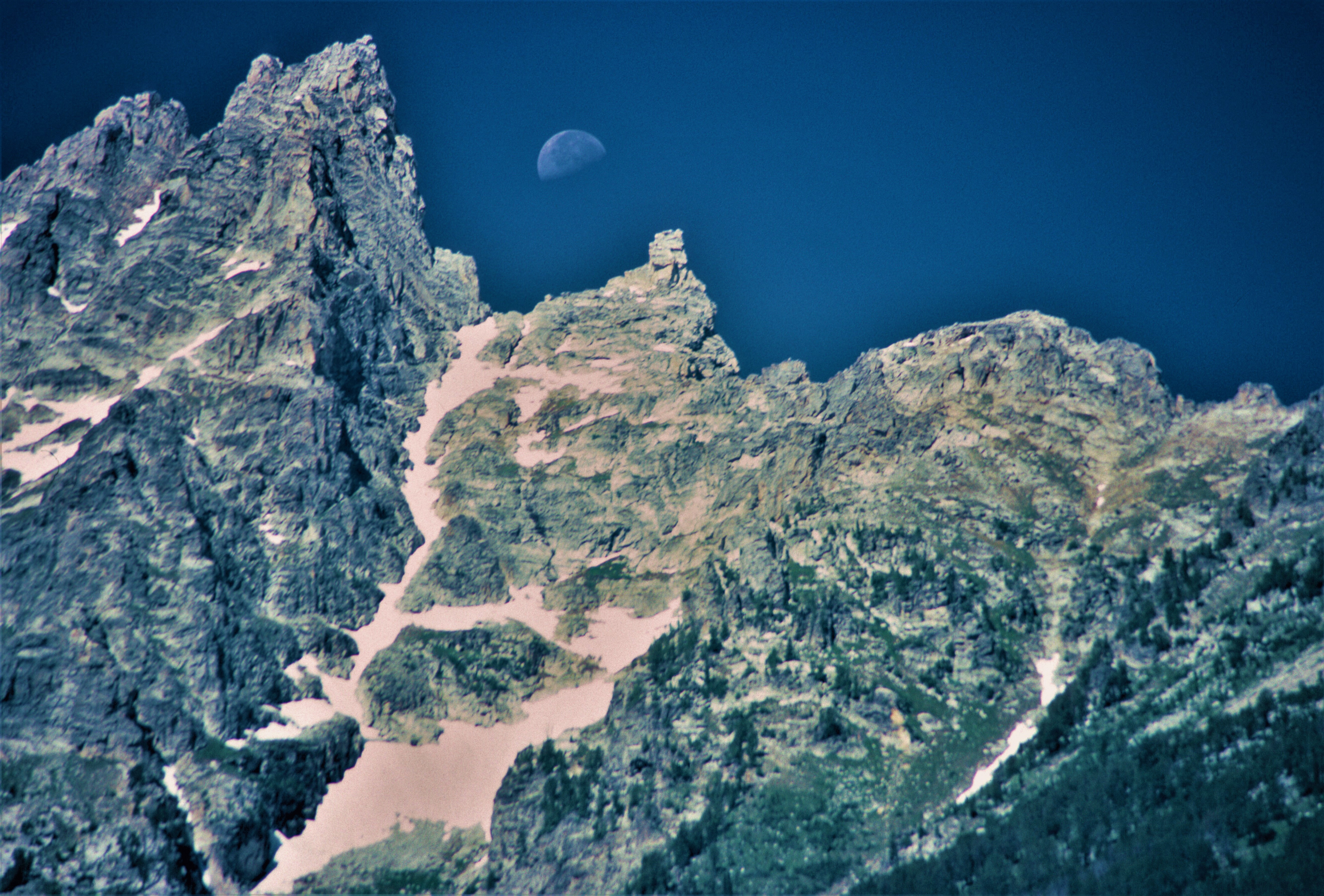 Moon Above The Tetons, Wyoming 1989